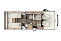 Nella zona giorno, il comfort è al centro dell'esperienza di viaggio: illuminazione indiretta, dettagli pregiati e un design che trasforma ogni viaggio in un sogno. La zona notte offre letti basculanti con elementi Clima Plux e materassi di alta qualità per assicurare notti ristoratrici.
