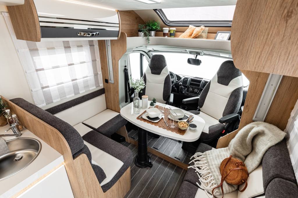 L'interno è dotato di oscuranti plissettati in cabina, un sistema di letto saliscendi e doghe nei letti. Esternamente, il modello è arricchito da una retrocamera, pannelli solari, una porta cellula con finestra fissa e zanzariera, e un portabiciclette opzionale a quattro posti. Inoltre, l'obblò panoramico sul tetto e diverse altre aperture garantiscono un'illuminazione naturale abbondante e una ventilazione efficace.